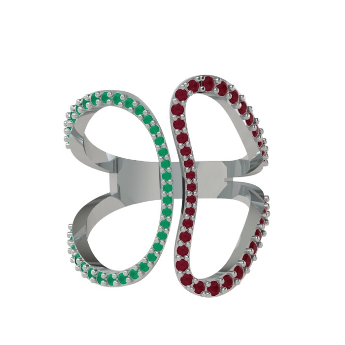 Kök zümrüt ve kök yakut 8 ayar beyaz altın yüzük