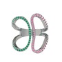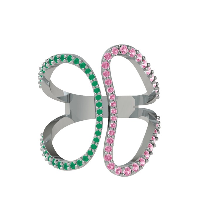 Kök zümrüt ve pembe kuvars 14 ayar beyaz altın yüzük