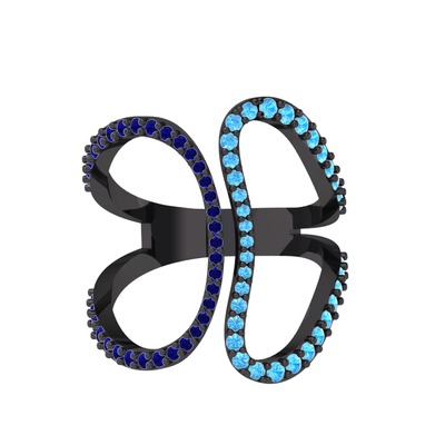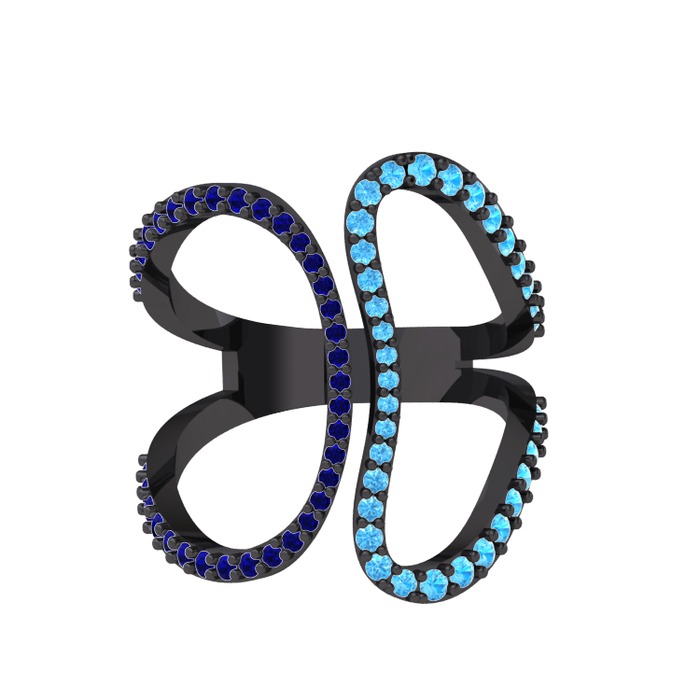 Lab safir ve akuamarin 925 ayar siyah rodyum kaplama gümüş yüzük