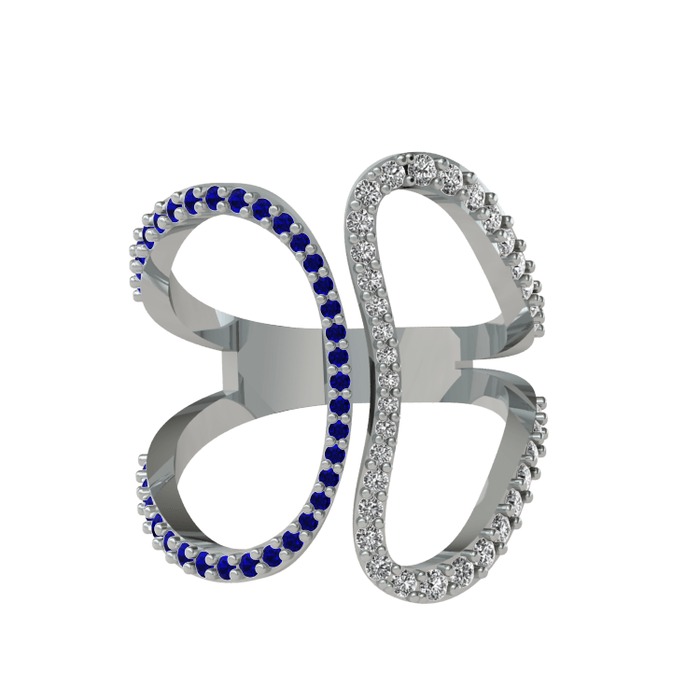 Lab safir ve beyaz zirkon 8 ayar beyaz altın yüzük