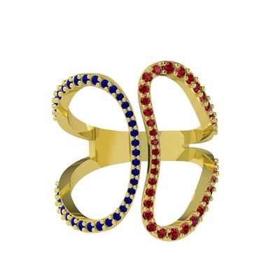 Lab safir ve garnet 925 ayar altın kaplama gümüş yüzük