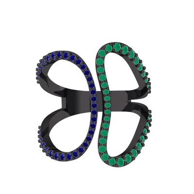Lab safir ve kök zümrüt 925 ayar siyah rodyum kaplama gümüş yüzük