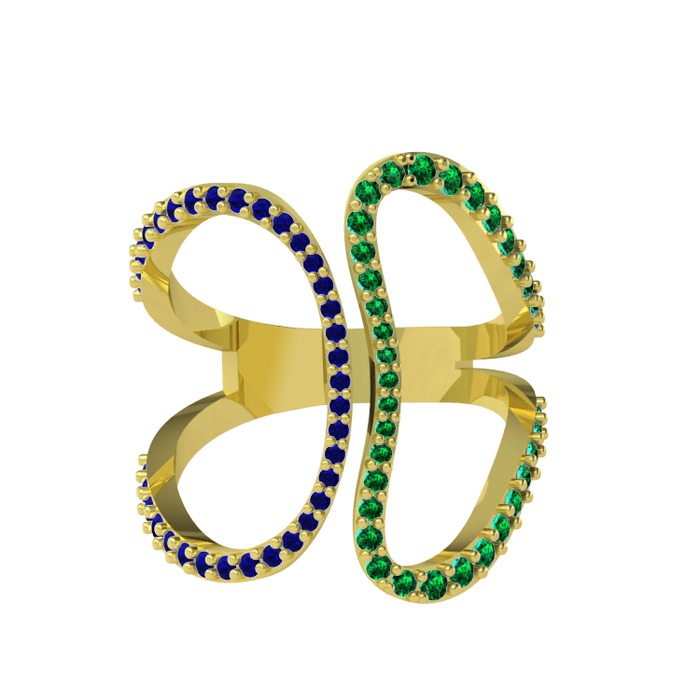Lab safir ve yeşil kuvars 8 ayar altın yüzük