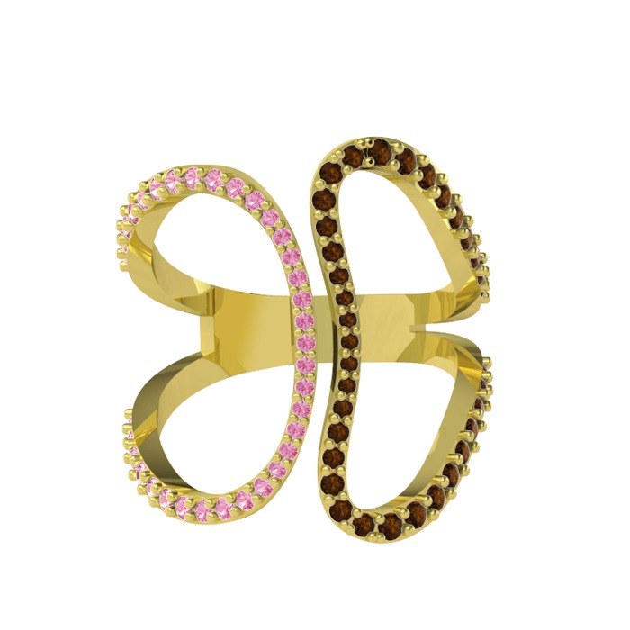 Pembe kuvars ve dumanlı kuvars 8 ayar altın yüzük