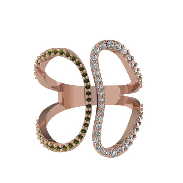 Peridot ve beyaz zirkon 8 ayar rose altın yüzük