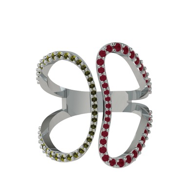 Peridot ve kök yakut 14 ayar beyaz altın yüzük