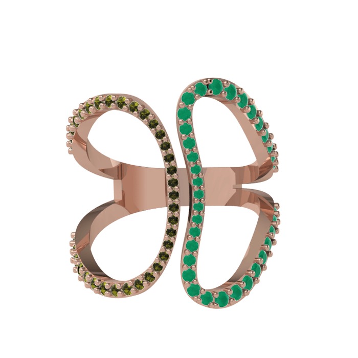 Peridot ve kök zümrüt 14 ayar rose altın yüzük