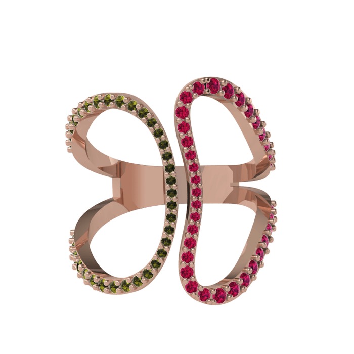 Peridot ve rodolit garnet 14 ayar rose altın yüzük