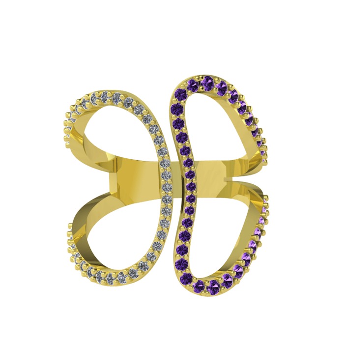 Pırlanta ve ametist 8 ayar altın yüzük (0.27 karat)