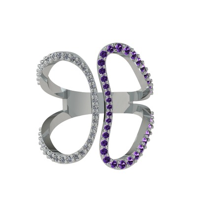 Pırlanta ve ametist 8 ayar beyaz altın yüzük (0.27 karat)