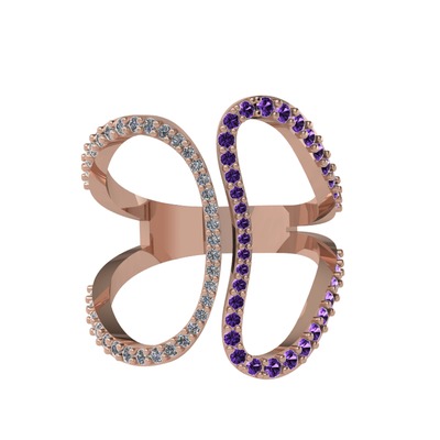 Pırlanta ve ametist 925 ayar rose altın kaplama gümüş yüzük (0.27 karat)