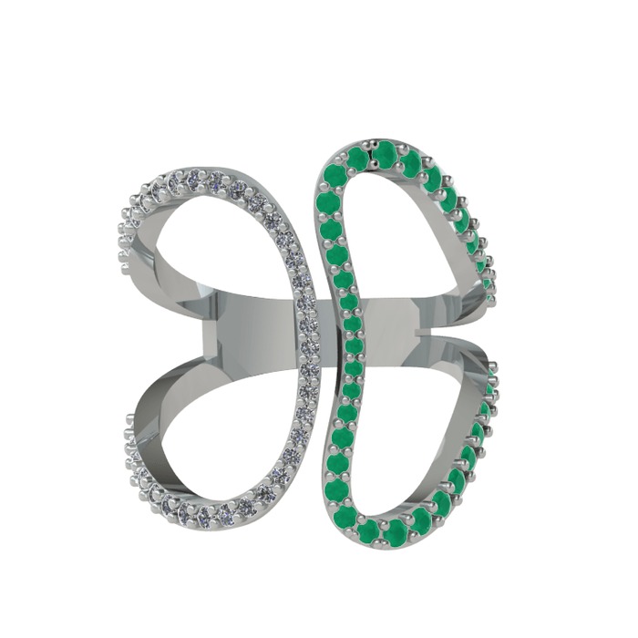Pırlanta ve kök zümrüt 14 ayar beyaz altın yüzük (0.27 karat)