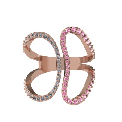 Pırlanta ve pembe kuvars 8 ayar rose altın yüzük (0.27 karat)