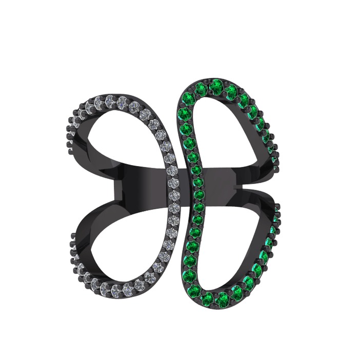 Pırlanta ve yeşil kuvars 925 ayar siyah rodyum kaplama gümüş yüzük (0.27 karat)