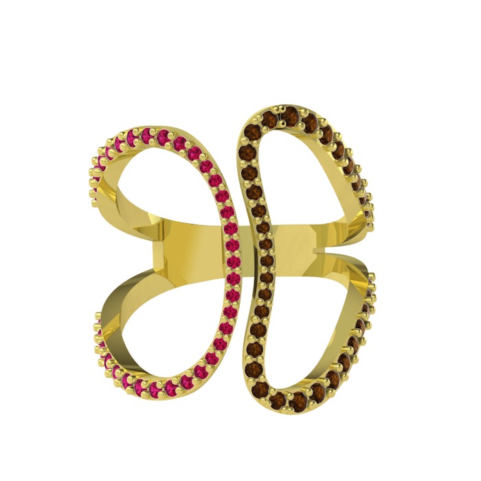 Rodolit garnet ve dumanlı kuvars 18 ayar altın yüzük