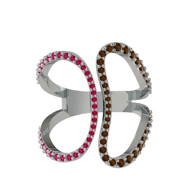 Rodolit garnet ve dumanlı kuvars 18 ayar beyaz altın yüzük