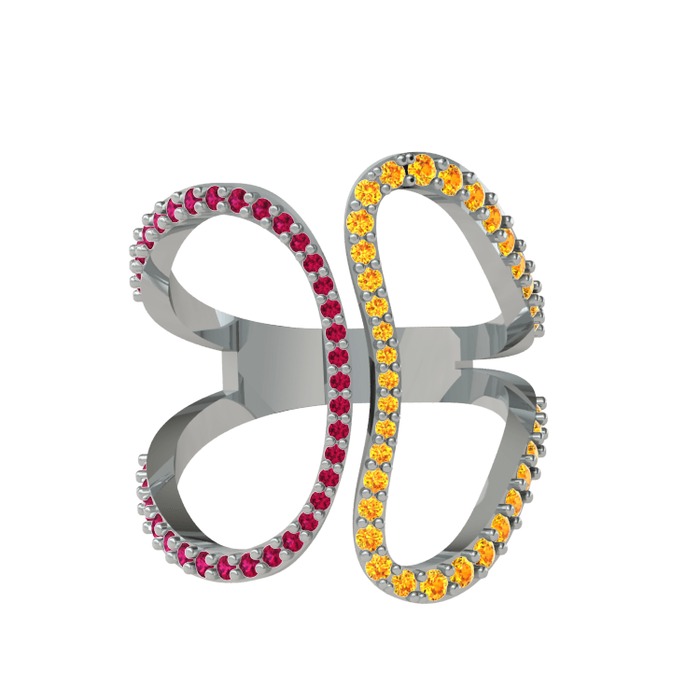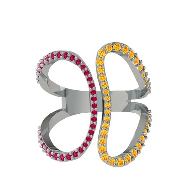 Rodolit garnet ve sitrin 18 ayar beyaz altın yüzük