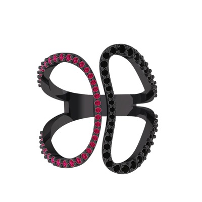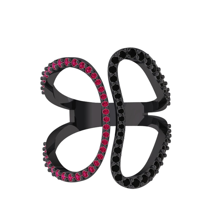 Rodolit garnet ve siyah zirkon 925 ayar siyah rodyum kaplama gümüş yüzük