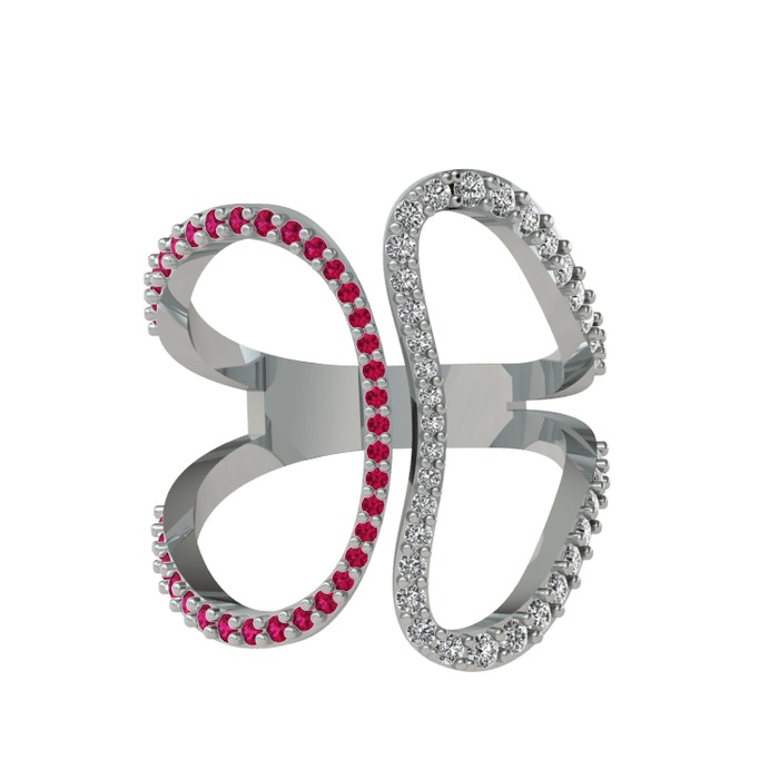 Rodolit garnet ve swarovski 14 ayar beyaz altın yüzük