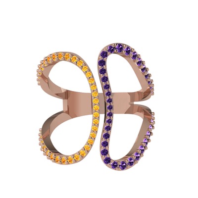 Sitrin ve ametist 14 ayar rose altın yüzük