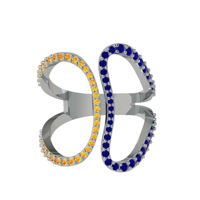 Sitrin ve lab safir 18 ayar beyaz altın yüzük