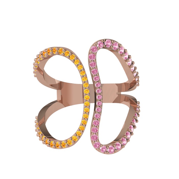 Sitrin ve pembe kuvars 14 ayar rose altın yüzük