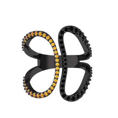 Sitrin ve siyah zirkon 925 ayar siyah rodyum kaplama gümüş yüzük