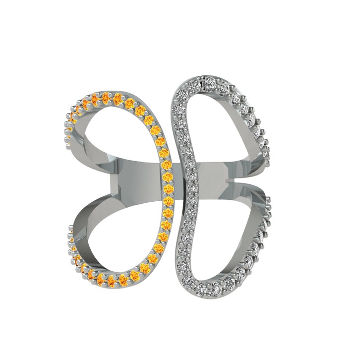 Sitrin ve swarovski 8 ayar beyaz altın yüzük
