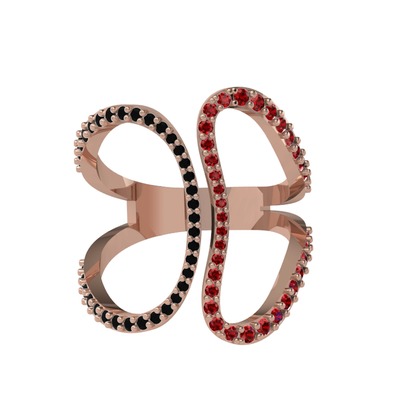 Siyah zirkon ve garnet 8 ayar rose altın yüzük