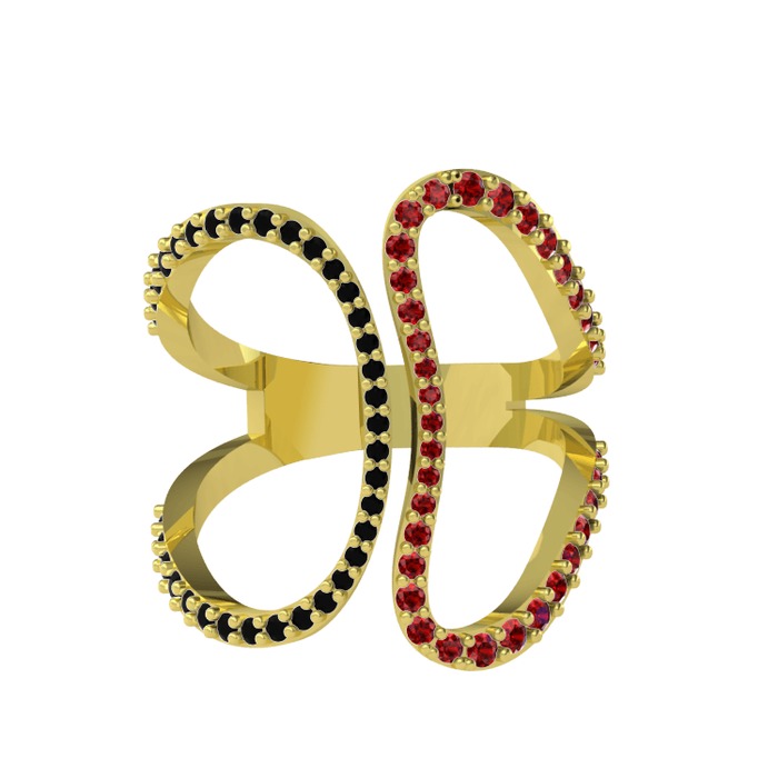 Siyah zirkon ve garnet 925 ayar altın kaplama gümüş yüzük