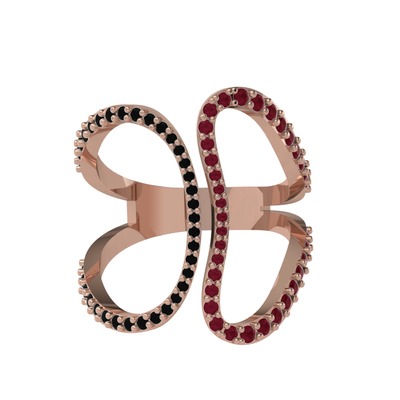 Siyah zirkon ve kök yakut 14 ayar rose altın yüzük