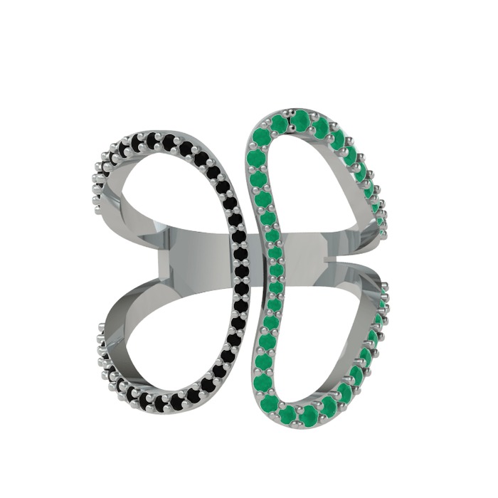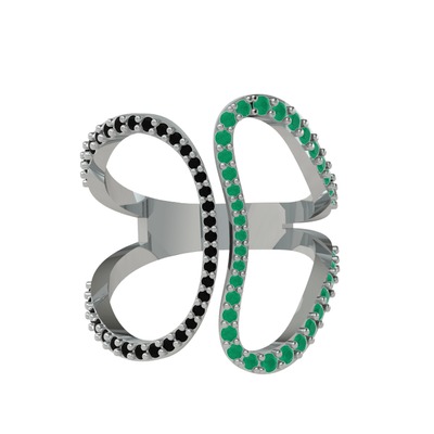 Siyah zirkon ve kök zümrüt 925 ayar gümüş yüzük