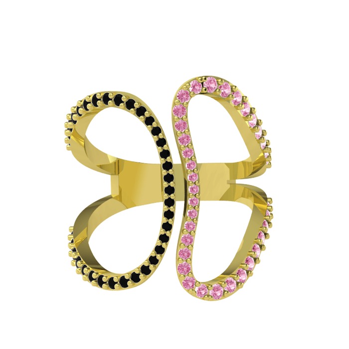 Siyah zirkon ve pembe kuvars 18 ayar altın yüzük