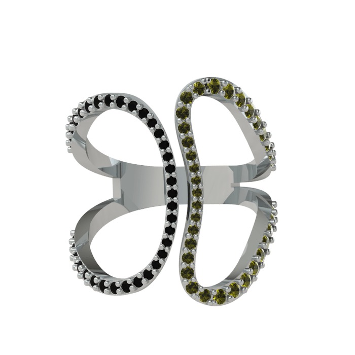 Siyah zirkon ve peridot 8 ayar beyaz altın yüzük