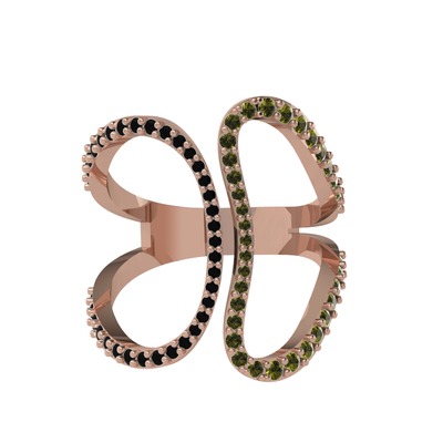 Siyah zirkon ve peridot 8 ayar rose altın yüzük