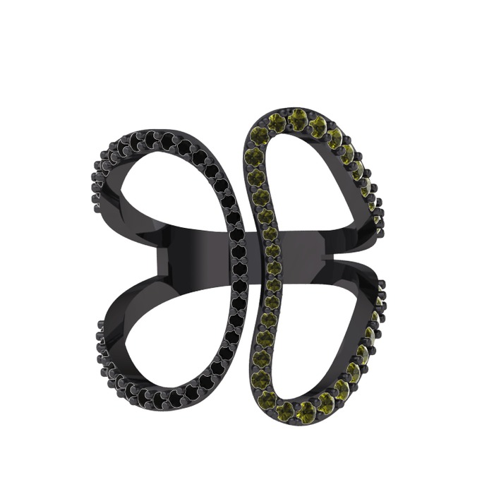 Siyah zirkon ve peridot 925 ayar siyah rodyum kaplama gümüş yüzük