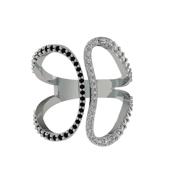Siyah zirkon ve swarovski 8 ayar beyaz altın yüzük