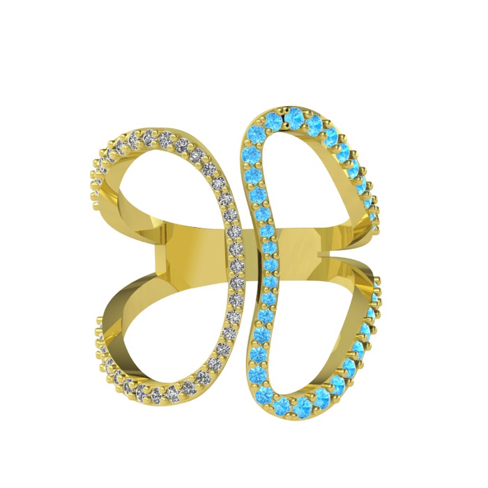 Swarovski ve akuamarin 14 ayar altın yüzük