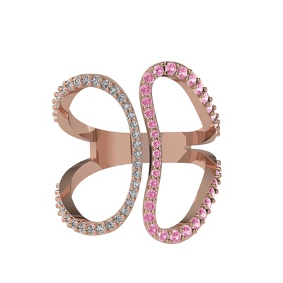 Swarovski ve pembe kuvars 8 ayar rose altın yüzük