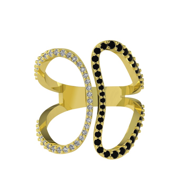 Swarovski ve siyah zirkon 18 ayar altın yüzük