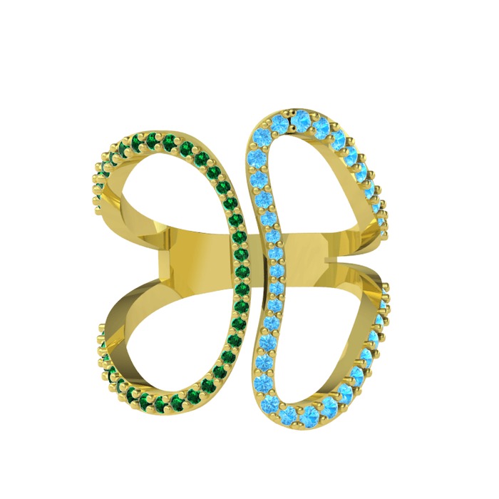 Yeşil kuvars ve akuamarin 8 ayar altın yüzük