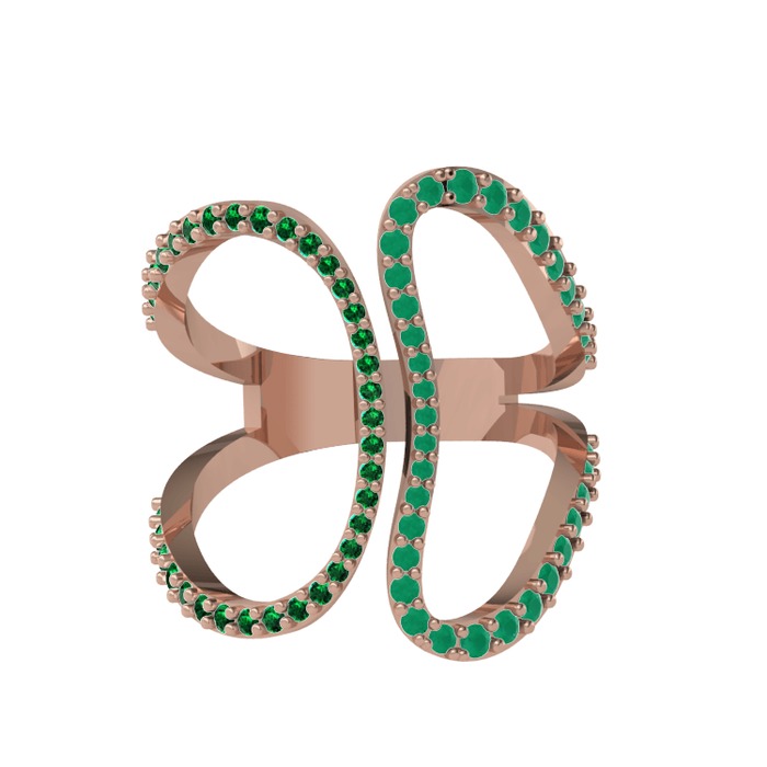 Yeşil kuvars ve kök zümrüt 925 ayar rose altın kaplama gümüş yüzük