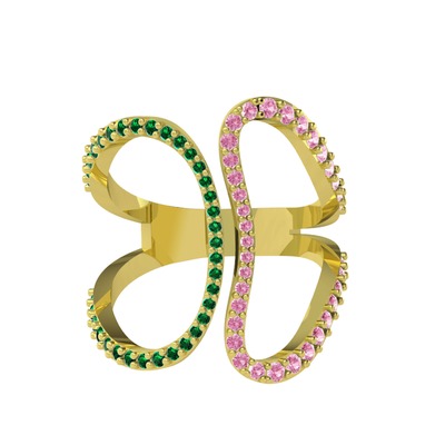 Yeşil kuvars ve pembe kuvars 14 ayar altın yüzük