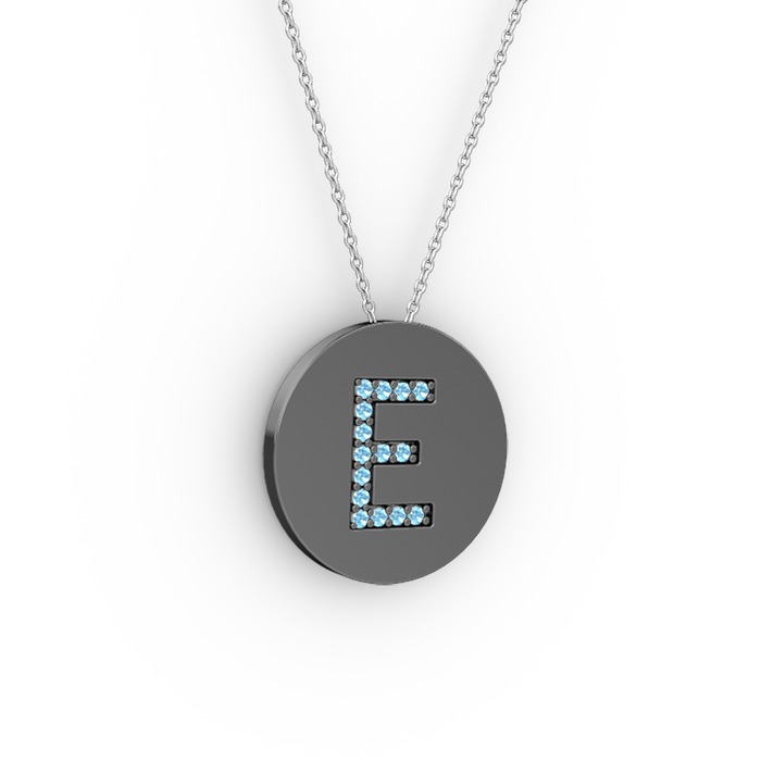 Akuamarin 925 ayar siyah rodyum kaplama gümüş kolye (40 cm beyaz altın rolo zincir)