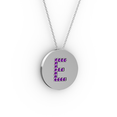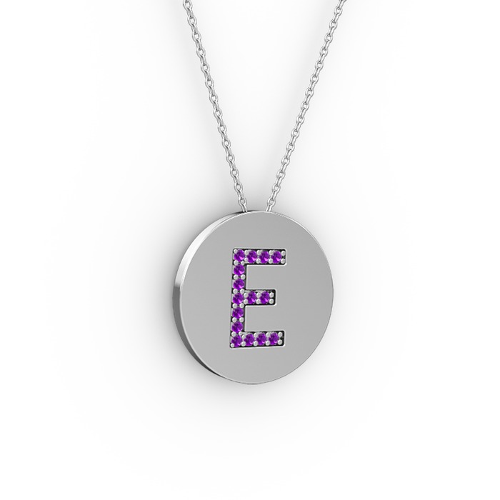 Ametist 14 ayar beyaz altın kolye (40 cm beyaz altın rolo zincir)
