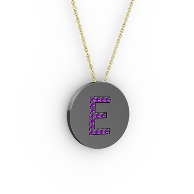 Ametist 925 ayar siyah rodyum kaplama gümüş kolye (40 cm gümüş rolo zincir)