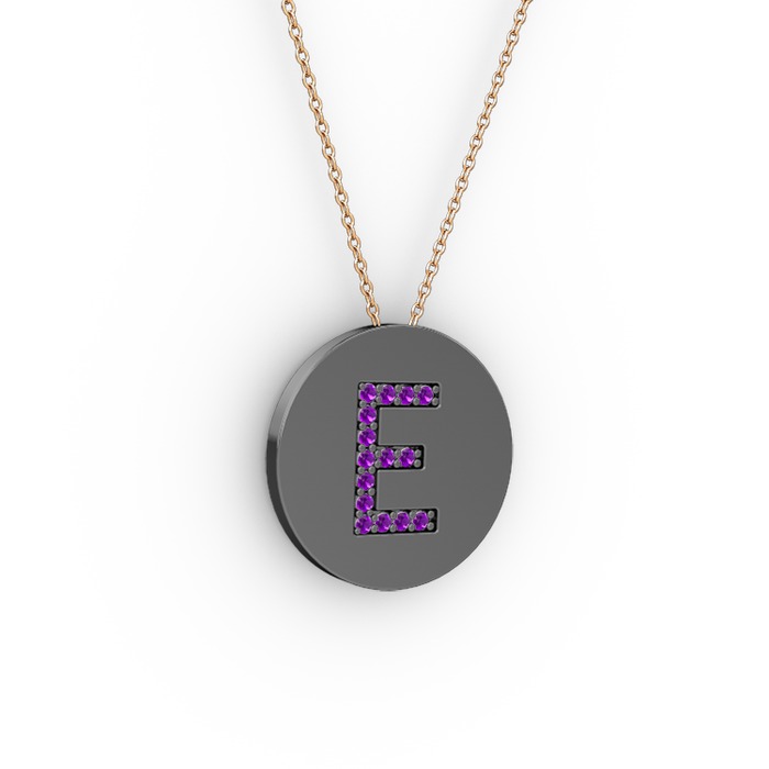 Ametist 925 ayar siyah rodyum kaplama gümüş kolye (40 cm rose altın rolo zincir)