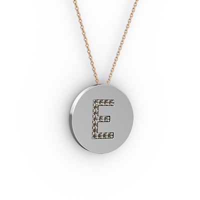Dumanlı kuvars 18 ayar beyaz altın kolye (40 cm rose altın rolo zincir)
