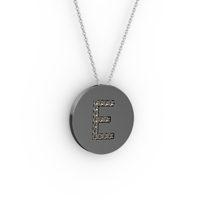 Dumanlı kuvars 925 ayar siyah rodyum kaplama gümüş kolye (40 cm beyaz altın rolo zincir)