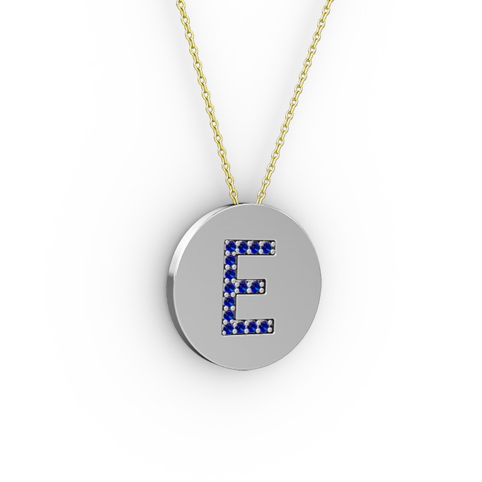 Lab safir 14 ayar beyaz altın kolye (40 cm gümüş rolo zincir)